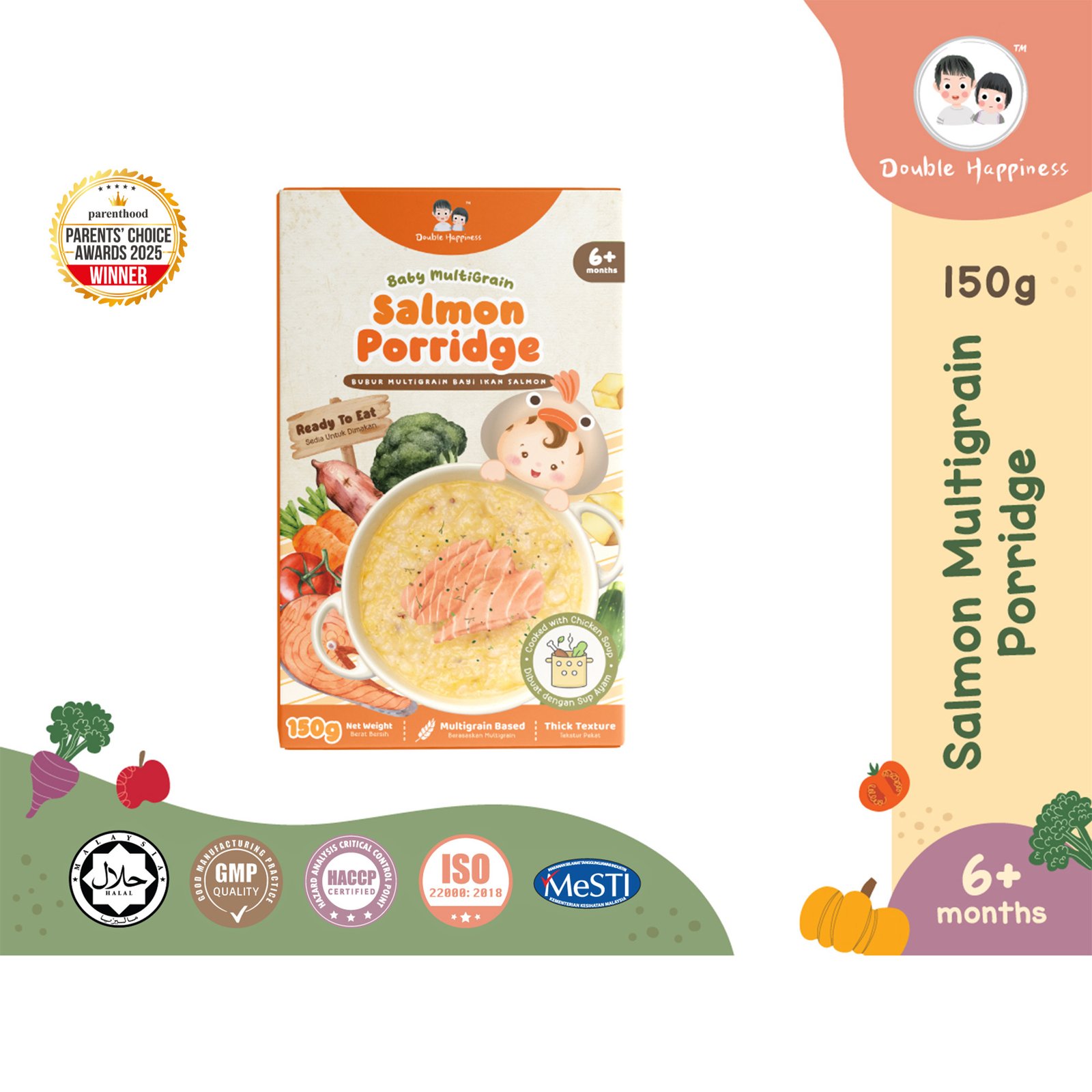 Our porridge is made with homemade soup instead of water, bringing natural sweetness and rich flavor in every spoonful. Packaged in convenient, travel-friendly pouches with their own spoon, they’re perfect for feeding on-the-go. Simply open and serve, or warm up by placing the pouch in hot water for 3-5 minutes.