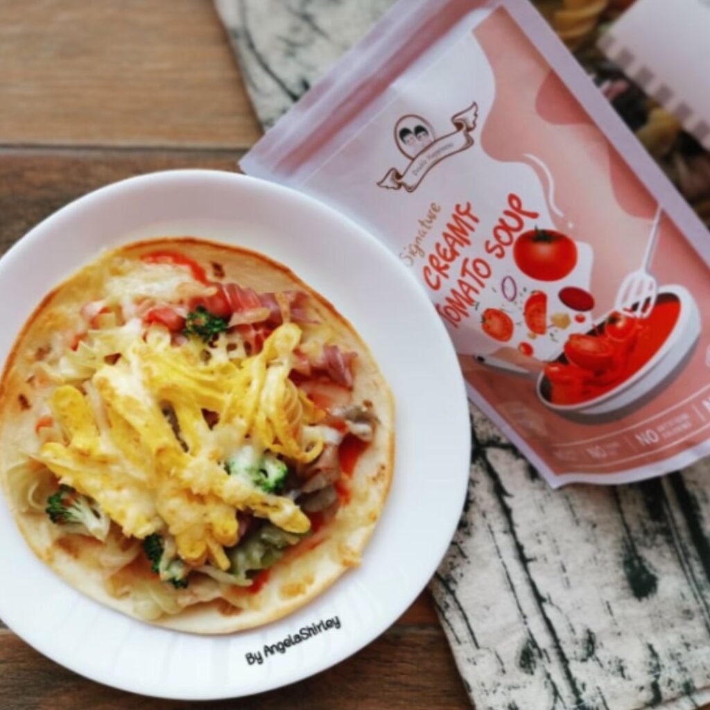 - Gunakan serbuk sup tomato dan air untuk memasak sos.