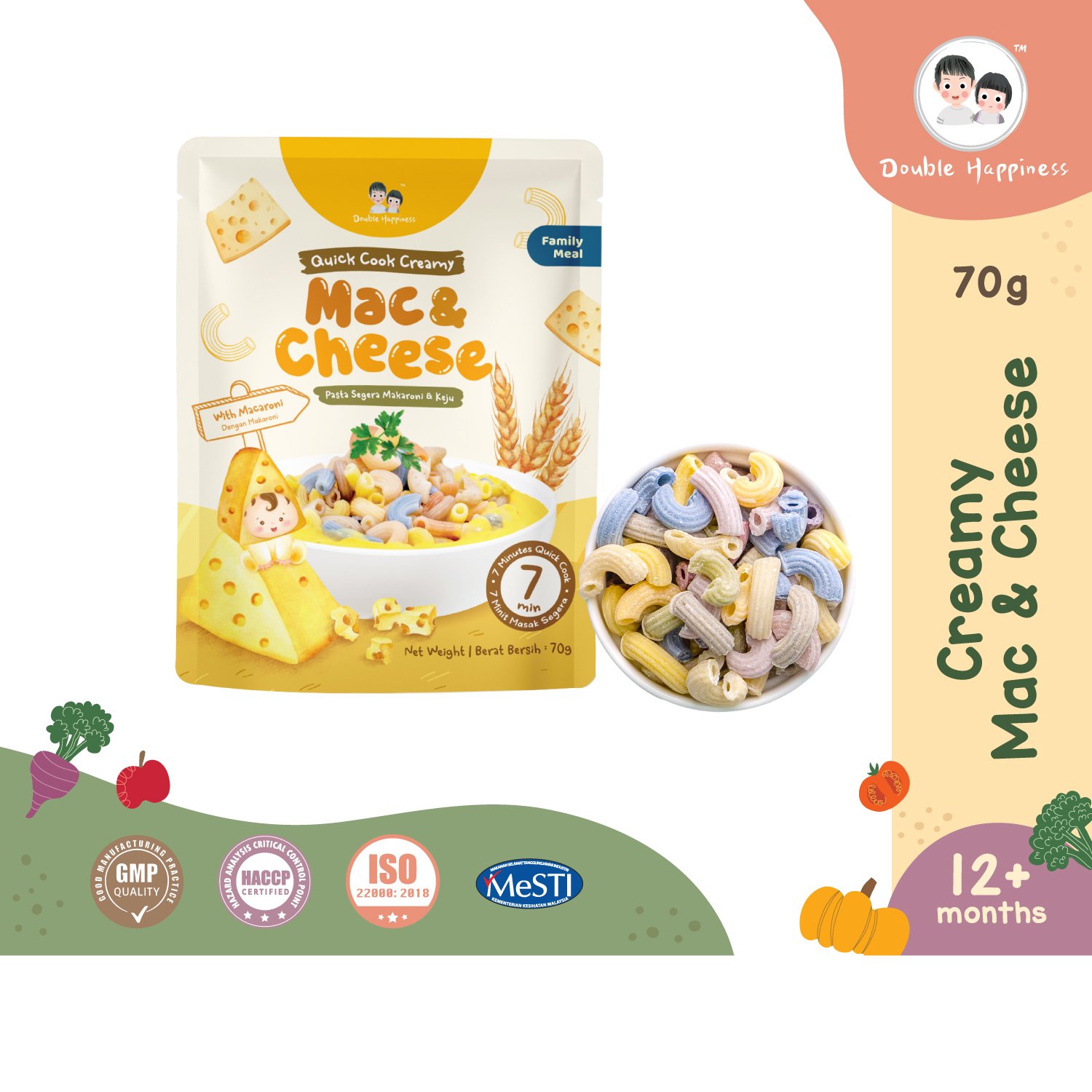 Made with DOUBLE HAPPINESS’s signature vegetable pasta, each serving contains 35% vegetable puree.