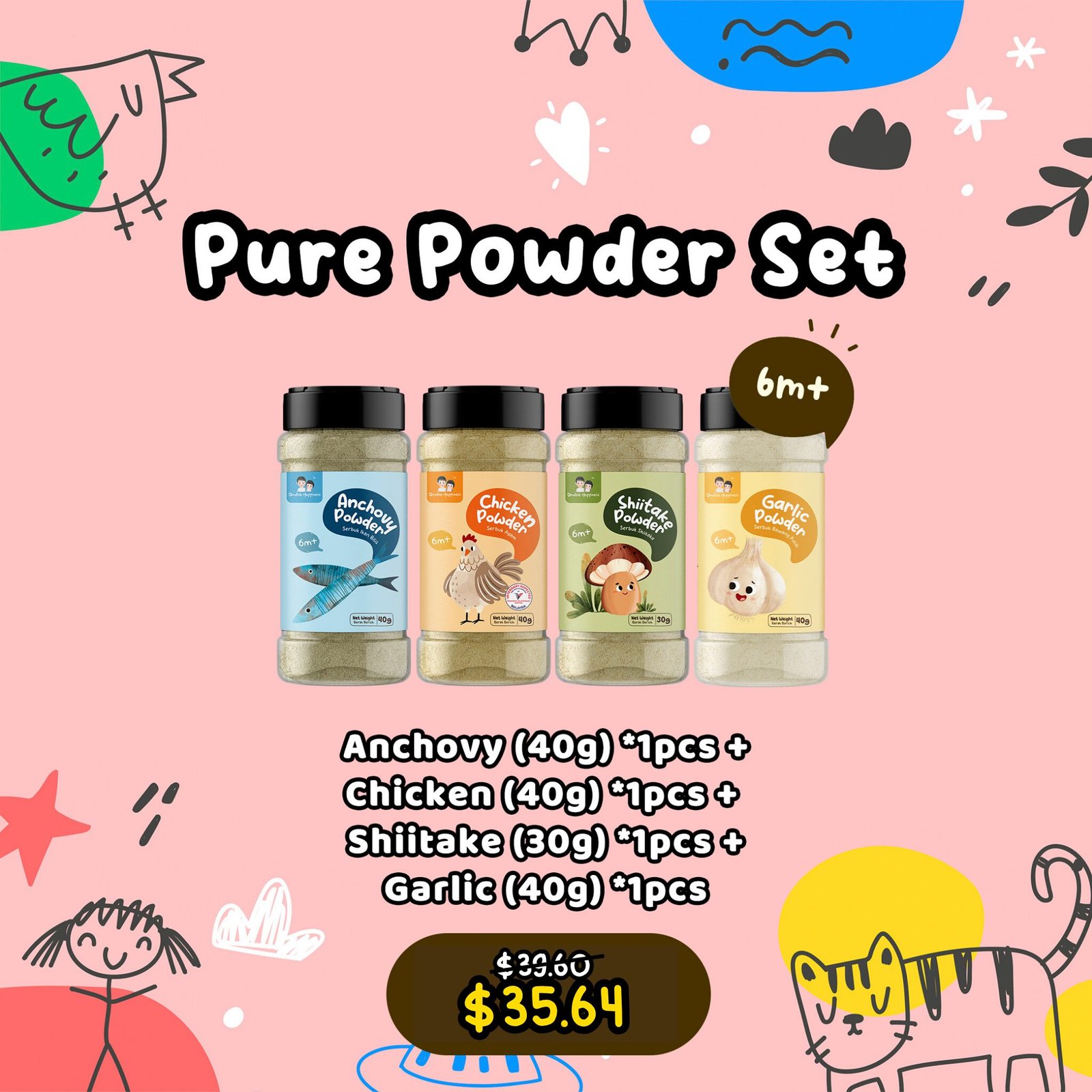 Introducing our Baby Seasoning Powder, made with only single ingredients and no added salt, sugar, or additives. Choose from three varieties: Chicken Powder, Shiitake Mushroom Powder, and Anchovy Powder.