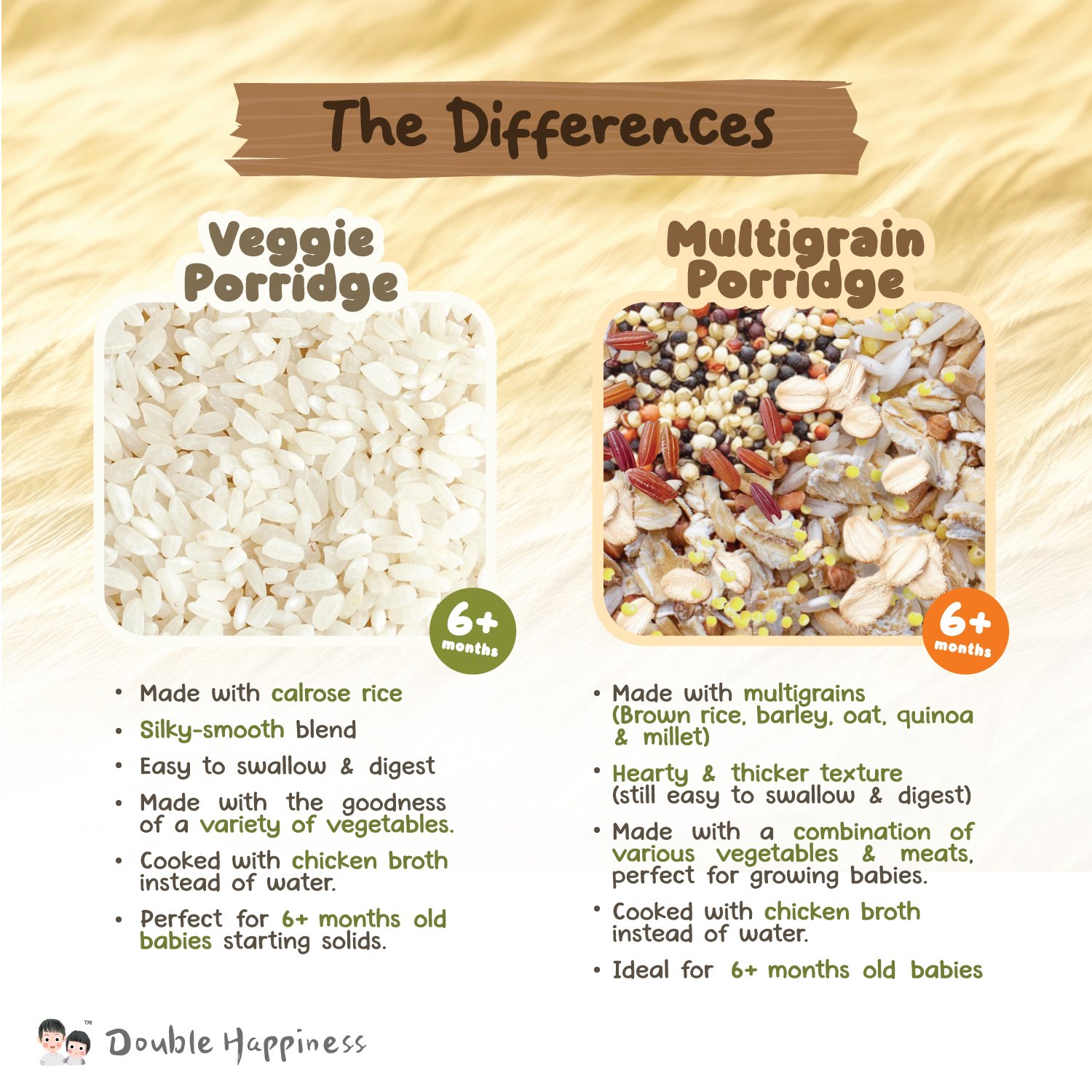 Choose from four nutritious porridge options, each made with a different vegetable for natural color and flavor: