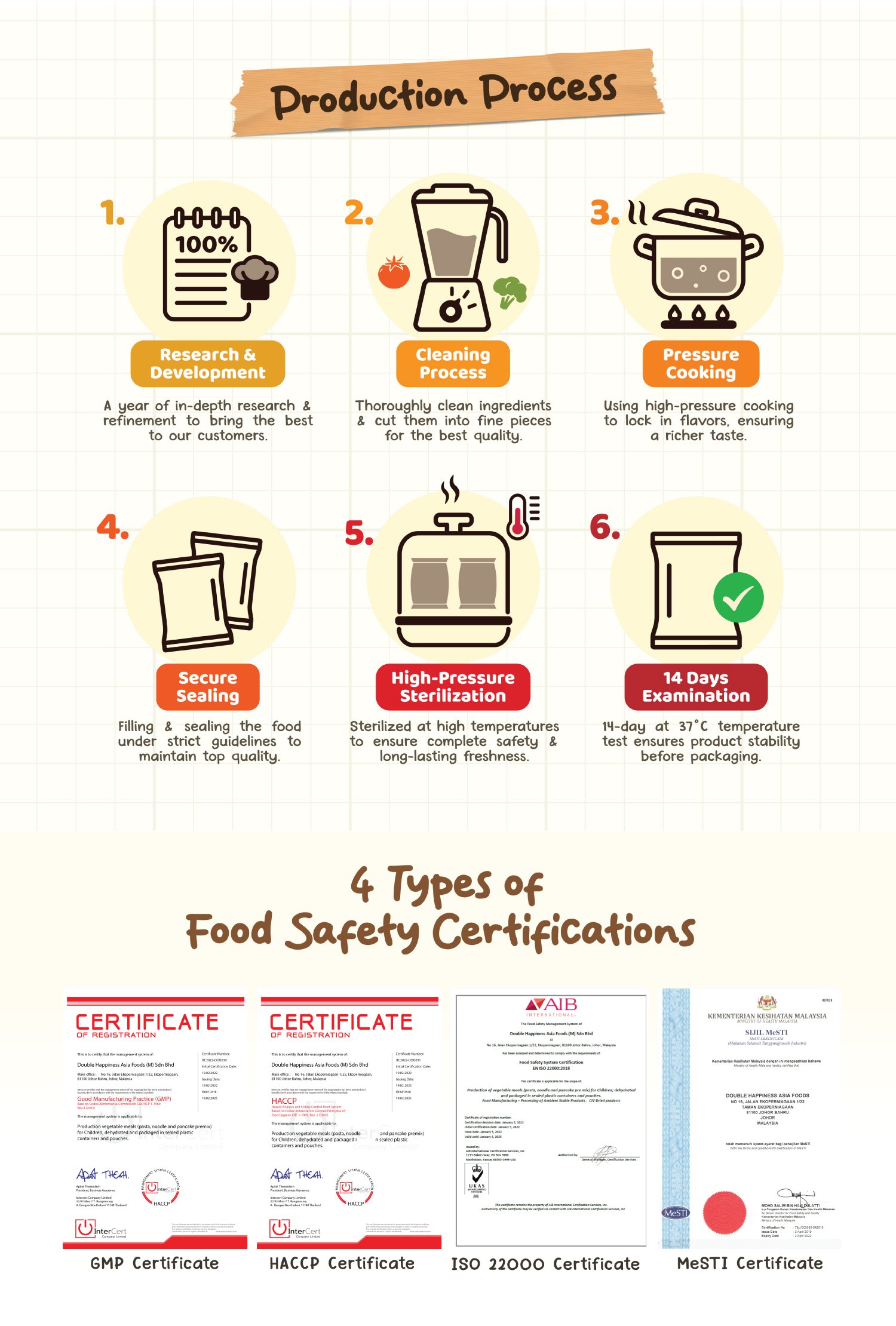 Designed for babies 6 months and above, our Ready to Eat Series makes mealtime quick, convenient, and nutritious. Whether you’re at home or on-the-go, our series offers a variety of tasty, wholesome options without the hassle of cooking. We use advanced preservation methods like UHT or high-pressure technology to eliminate bacteria, ensuring top quality and freshness, just like UHT milk. Plus, we keep things natural – no preservatives, added salt, or artificial ingredients.