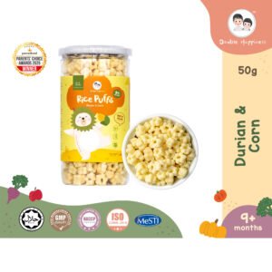 Durian & Corn: Made with real Musang King durian and sweet corn, this unique snack introduces your little one to authentic flavors while providing essential nutrients.